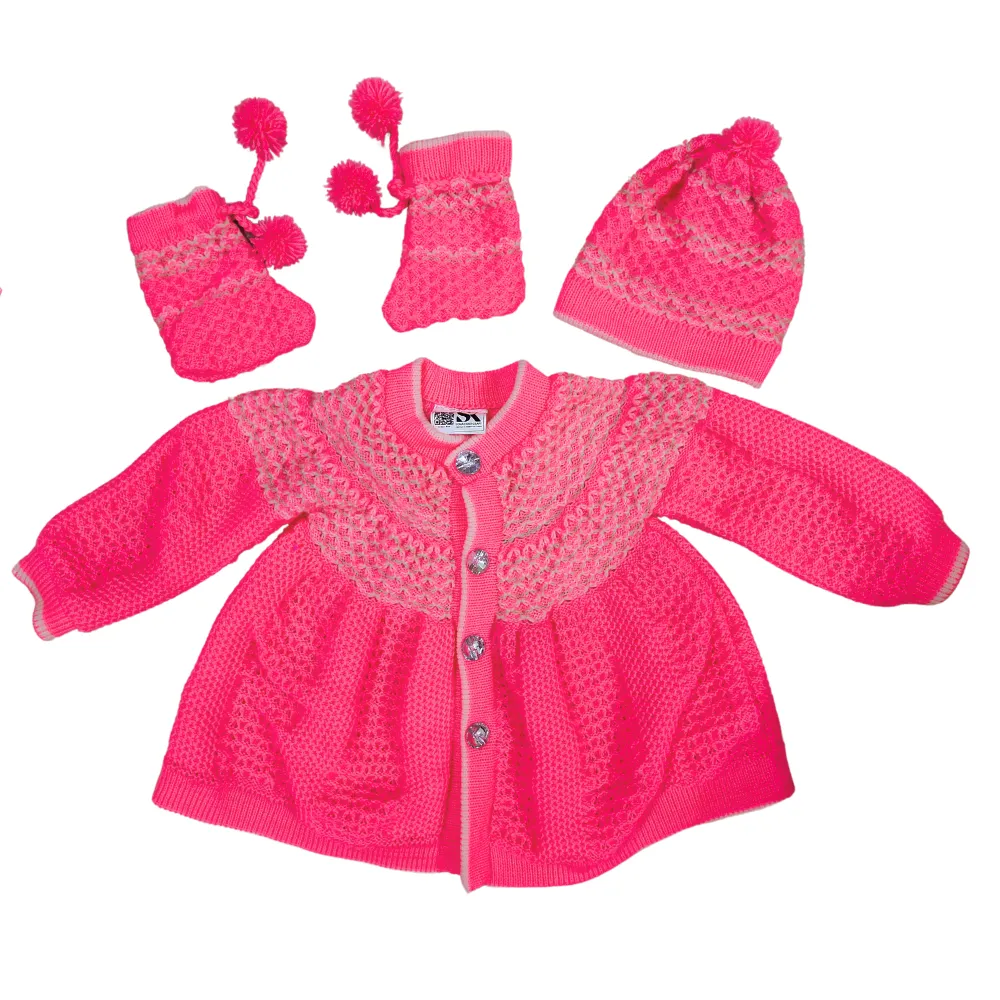 Complete Baby Winter Set: Woolen Frock, Lower, Cap & Socks by Sonai Knitcraft (0-24 Months)