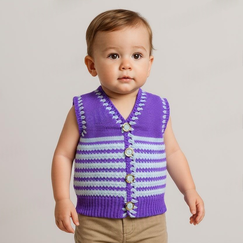 Purple White Striped V Neck Sleeveless Sweater Knitted for Baby Boys & Baby Girls